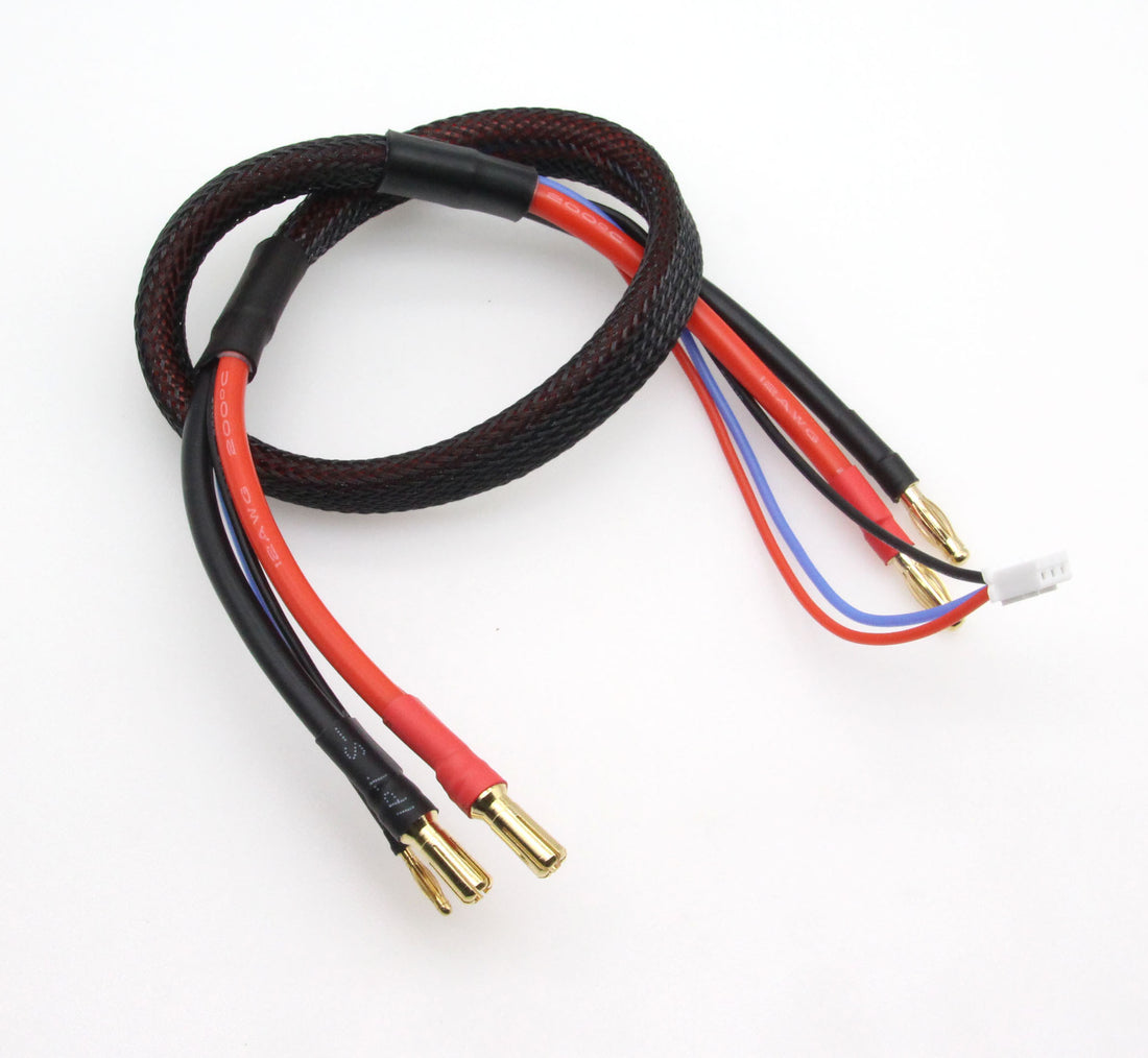 Opladekabel til 2 cellet batterier med 5mm guldstik og 2mm balancestik, 4mm guldstik til Oplader