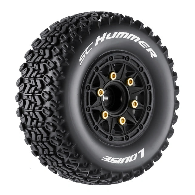 LouiseRC - T3224SB - SC-HUMMER - 1/10 Short Course Tire Set - Mounted - Soft - Black Wheels - Removable 1-10 SC Hex - 12,14,17mm