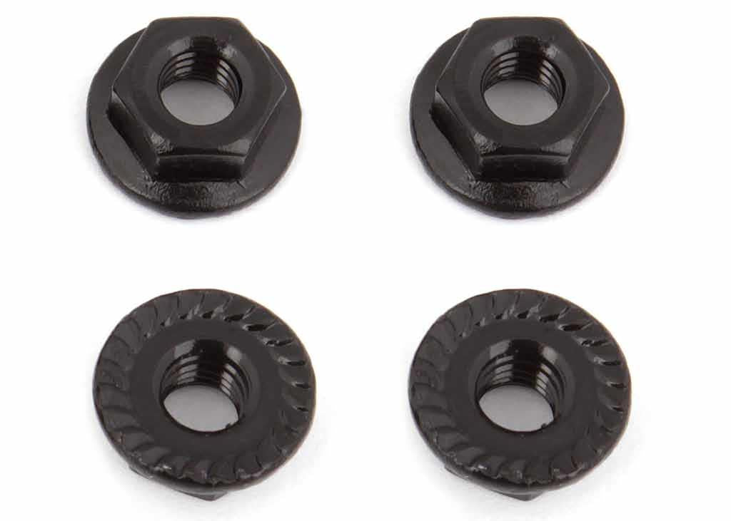 4mm Møtrikker, serrated - 6 stk