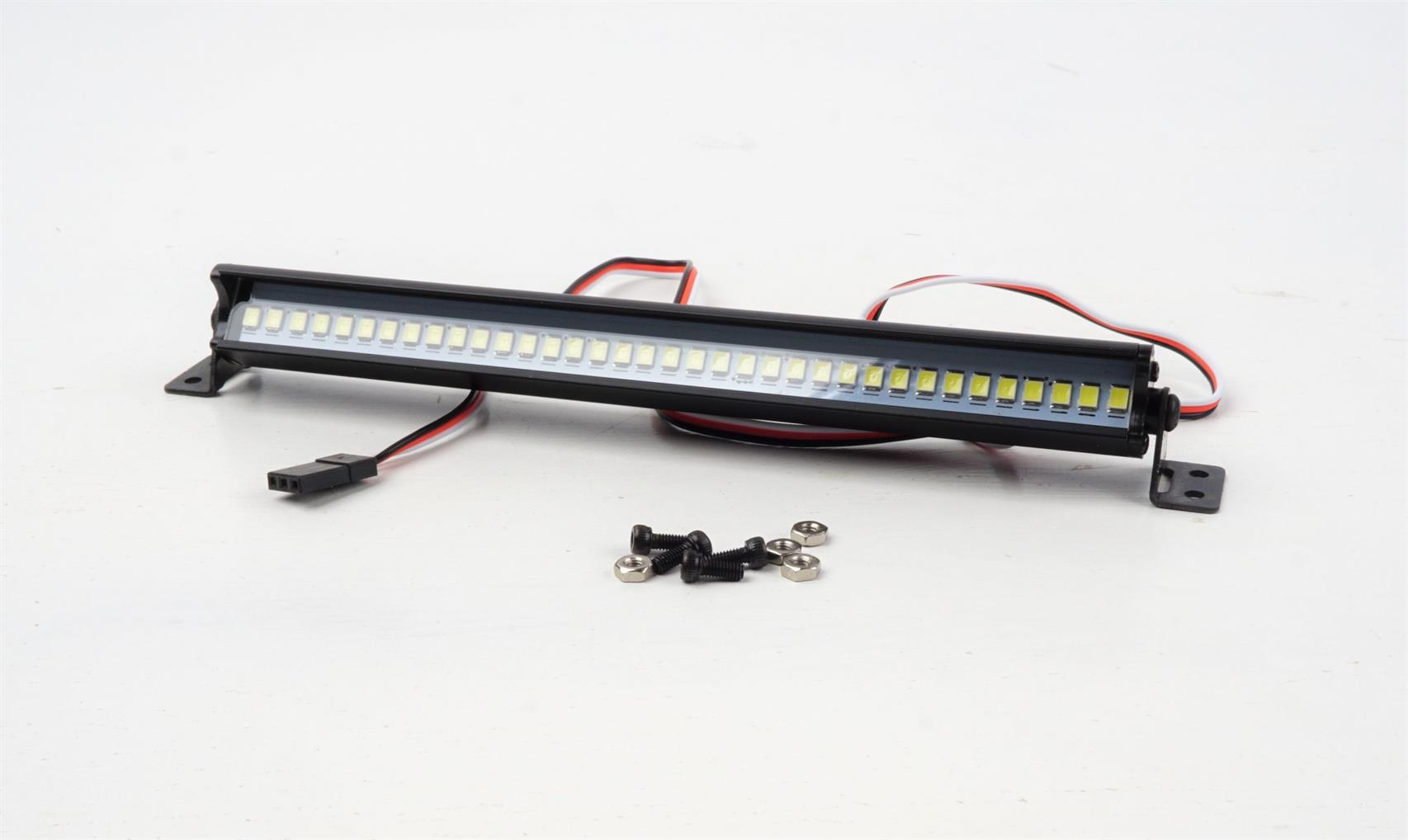 Så er Hobby Details DTLR01017A LED lysbom med 36 LED den perfekte løsning for dig. Med kraftige spots giver det en god belysning, så du kan køre sikkert, selv i mørket. Dette LED-lys passer perfekt til taget på din fjernstyret Crawler bil og kan let tilsluttes 6V med det medfølgende Futaba stik.