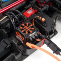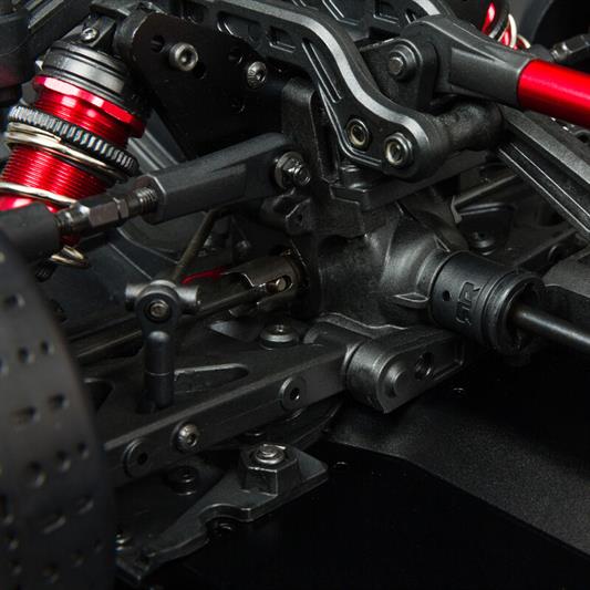 Fjernstyringen er en Spektrum DX3 med SR6110AT modtager. Denne modtager har AVC, som på Dansk betyder Gyro og som hjælper dig med at rette bilen op, hvis du skrider ud under kørslen.