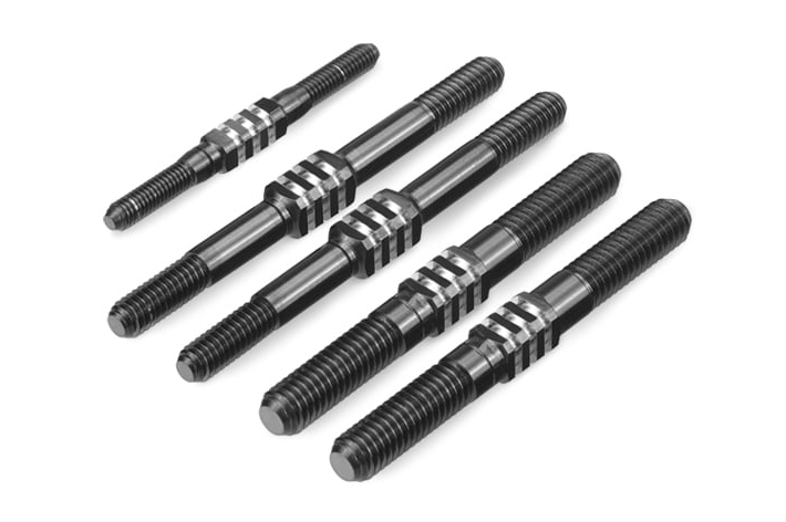 JConcepts er introduktionen af titanium turnbuckle sættene, der er designet specifikt med fokus på stil, holdbarhed og præstation. Turnbuckle sættets design er centreret omkring en solid 5 mm firkantet titanium (til camber og styretøjet), der gradvist tapers ned til en gevindbase, som passer til de medfølgende stangender i sættet. Designet er kendetegnet ved det forlængede justeringsområde og de roterende "finnede" snit omkring midten.