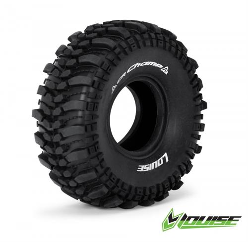 LouiseRC T3231VI CR-CHAMP er et sæt crawler dæk uden fælge, designet til hobbyentusiaster, der ønsker et pålideligt og prisvenligt dæk med solidt greb til deres 1/10 skala crawler. Disse dæk er skabt til at levere forbedret trækkraft og kontrol på ujævne overflader som sten, jord og græs.